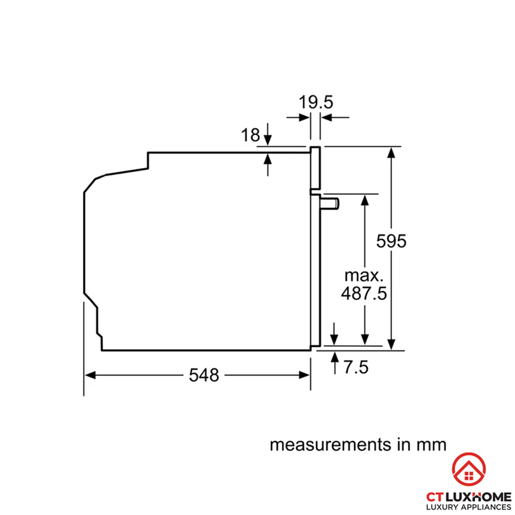 Kích thước nhỏ gọn 595 x 594 x 548 mm của lò nướng Bosch HBG7241B1 đem đến sự thuận tiện cho việc lắp đặt, mang lại sự tiện nghi cho căn bếp của bạn.